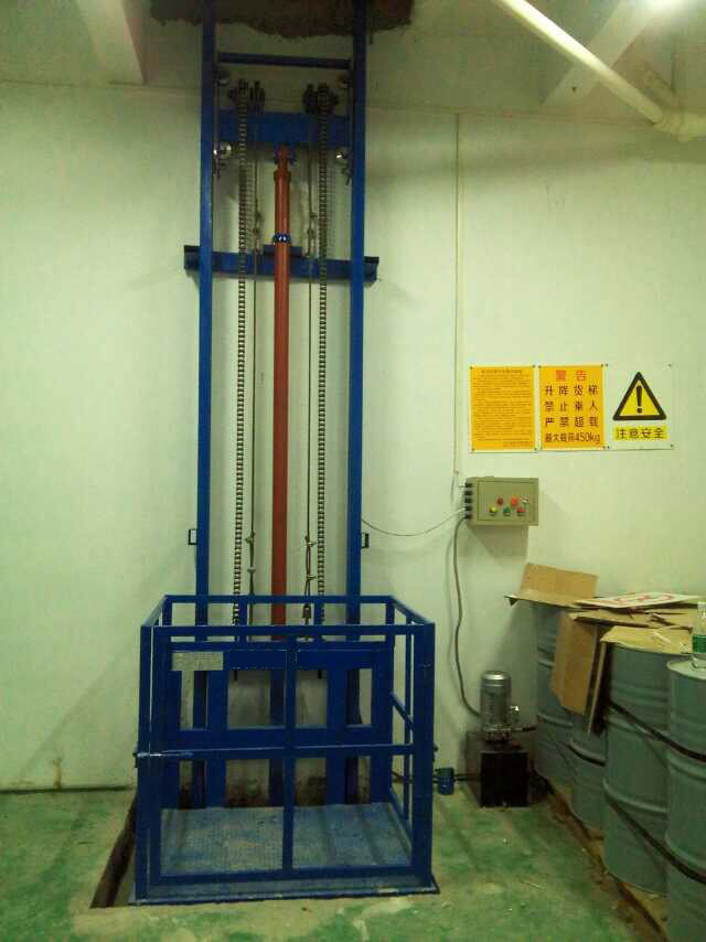 單柱導軌升降機是一款單側導軌立柱支撐進行提升貨物使用的液壓升降機械,采用單側油缸、鏈條、導軌立柱進行提升使用,符合各種小型貨物升降使用