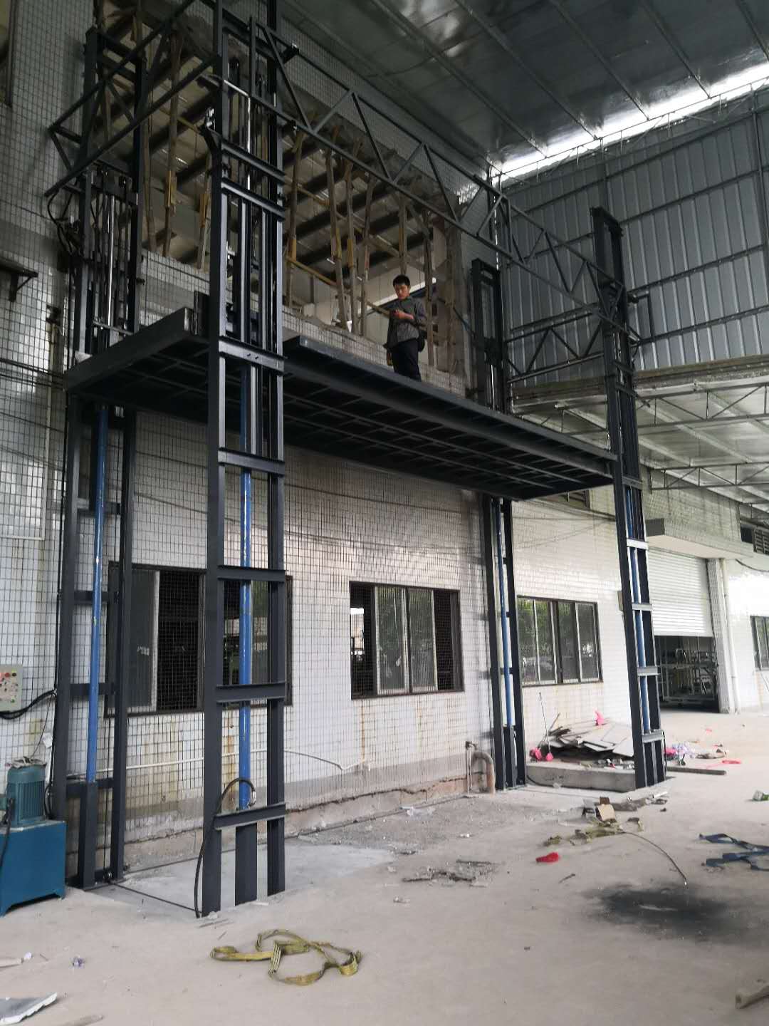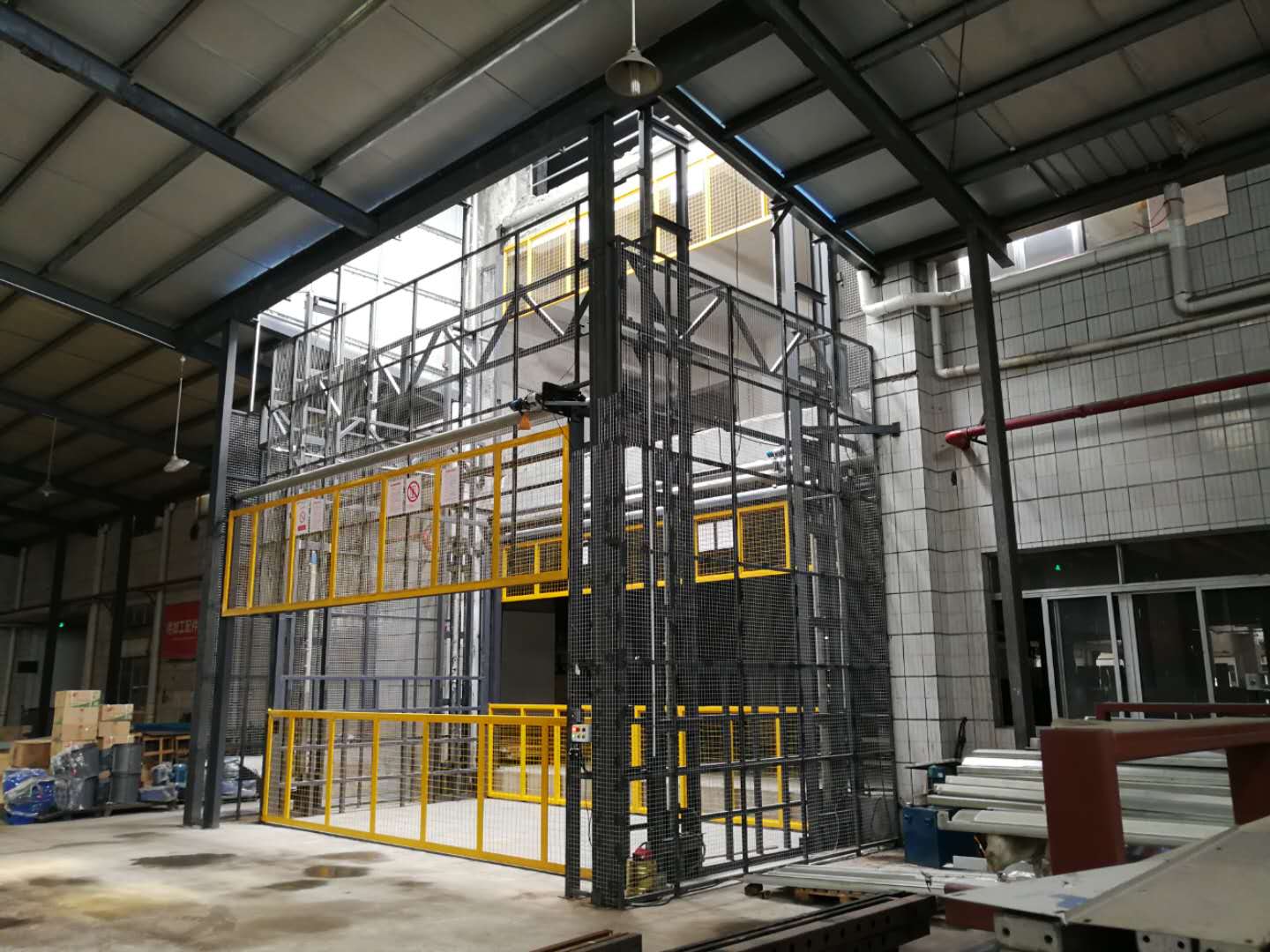 四柱式升降平臺采用了四角立柱+液壓油缸+板式鏈條+鋼絲繩等4重安全防護,且各樓層間設(shè)有限位開關(guān)及緩沖設(shè)備,緩解了升降平臺到達制定樓層時的緩沖力,且平臺設(shè)有緊急停止按鈕、緊急下降按鈕等,為各類突發(fā)事項做好了萬全準備。
